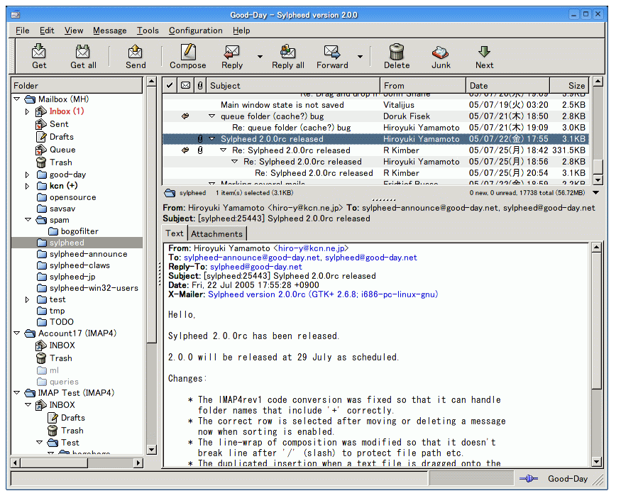 Sylpheed adopts 3-paned display similar to the popular e-mail